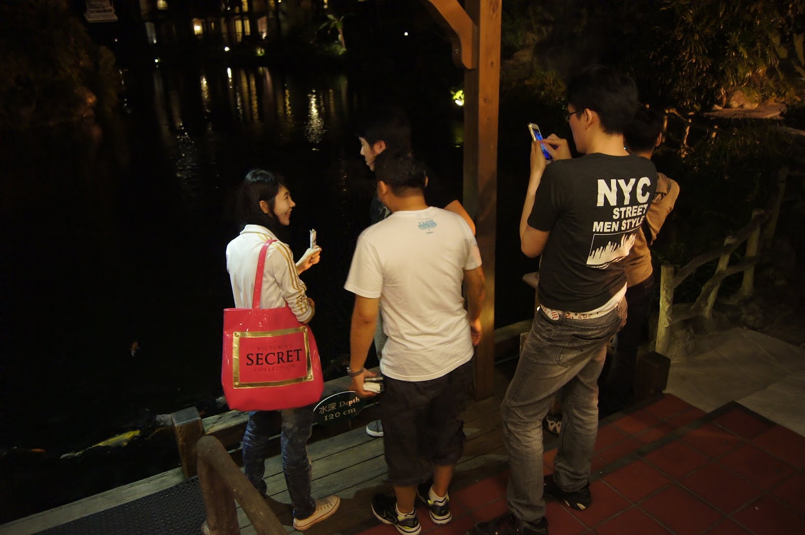 一群人在這邊餵魚 +等船,蚊子很多,旁邊也有提供天然的防蚊液